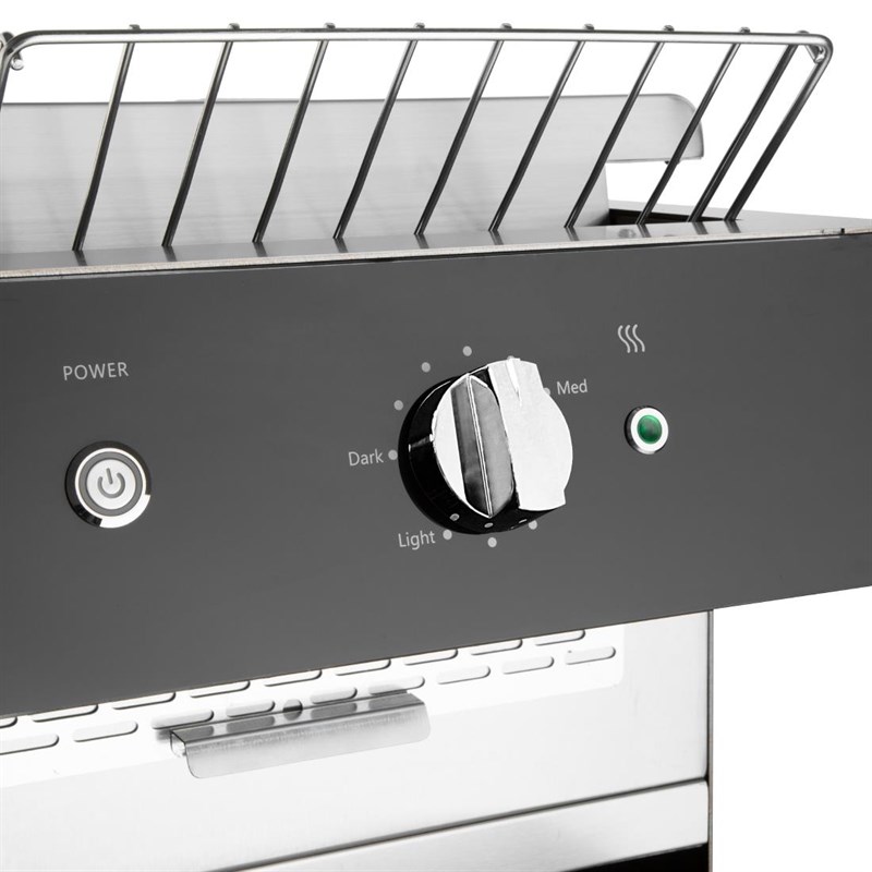 Verhoog uw ontbijtservice met de stijlvolle Rowlett dubbele sleuf transportbandrooster - een krachtige en betrouwbare rooster ontworpen om elke keer perfect geroosterde sneden te leveren.