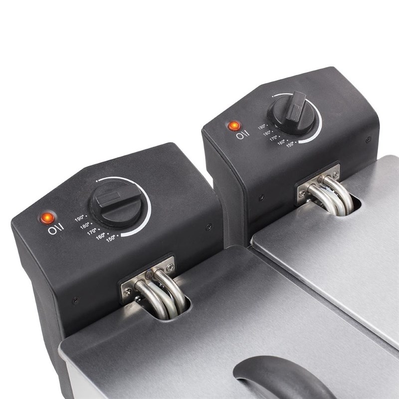 Met deze unieke dubbele frituurpan (2 x 3 L) kun je tegelijkertijd friet en snacks in aparte vetten frituren. Dankzij de dubbele thermostaatfunctie kunnen beide containers afzonderlijk worden gebruikt. Ideaal voor grote gezinnen!
