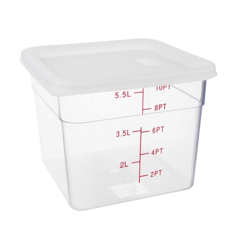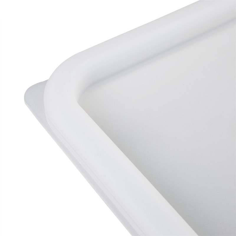 Deze ruimtebesparende, stevige polycarbonaat deksels passen op de 5,5L en 7L voedseldozen en sluiten ze luchtdicht af, waardoor voedsel langer vers blijft. Kleurgecodeerd voor eenvoudige herkenning. De deksels zijn vaatwasser-, magnetron- en vriezerbestendig en bestand tegen temperaturen van -5°C tot +70°C.