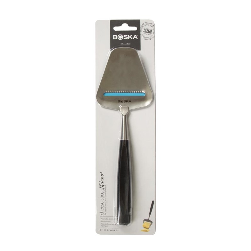 Met de Kaasschaaf Milano+ bepaal je zelf de dikte van je kaasplakken! Deze snijmachine is extra non-stick, zeer voordelig en vaatwasmachinebestendig. Met één vlotte beweging maak je de lekkerste plakjes halfharde en harde kaas. De snijmachine is ook geschikt voor komkommer, asperges en andere groenten. Liever dikke of dunne plakjes kaas? Met deze kaasschaaf bepaal je zelf hoe dik je de plakjes maakt. Is de plak te dik? Buig vervolgens het grote snijblad iets naar achteren. Wil je de plak kaas iets dikker? Beweeg het mes dan iets naar voren. Deze kaasschaaf is zeer eenvoudig in gebruik. De tanden op het snijblad en de antiaanbaklaag zorgen voor minder weerstand tijdens het snijden. Dit maakt het snijden van de lekkerste kazen heel eenvoudig. De stevige, verbeterde en extra lange handgreep ligt heerlijk comfortabel in de hand. Doordat het kaasmes van kunststof en RVS is gemaakt, kan het gewoon zo de vaatwasser in. Het schoonmaken is een fluitje van een cent en hij is snel weer klaar voor gebruik. Met welke kaas ga jij deze kaasschaaf als eerste testen?