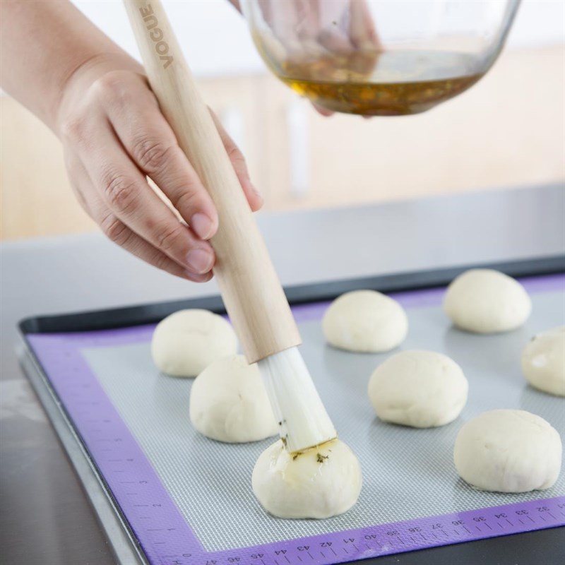 De Vogue ronde bakkwast met houten handvat is een must-have voor professionele keukens, bakkerijen en patisserieën. Gemaakt met duurzame, voedselveilige PP borstelharen, zorgt hij voor gelijkmatig bestrijken en glazuren zonder haren te verliezen, terwijl het ergonomische houten handvat comfort biedt tijdens repetitief dagelijks gebruik.