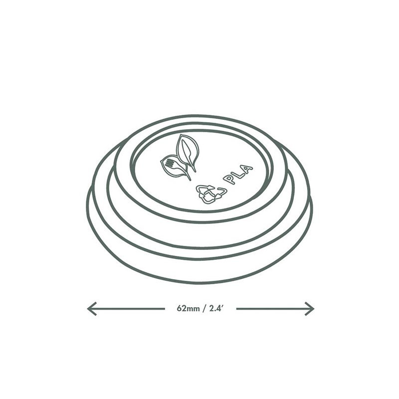 Deksels van hernieuwbaar materiaal voor Vegware 62-serie espressobekers. De deksels zonder gat zijn ideaal voor koffie, warme chocolademelk of zelfs sauzen. Gemaakt van CPLA, een hernieuwbaar plantaardig materiaal. Gebroken wit met Vegware tekst en illustraties. Prijswinnende kwaliteit van Vegware, gemaakt van planten. Industrieel composteerbaar waar geaccepteerd.