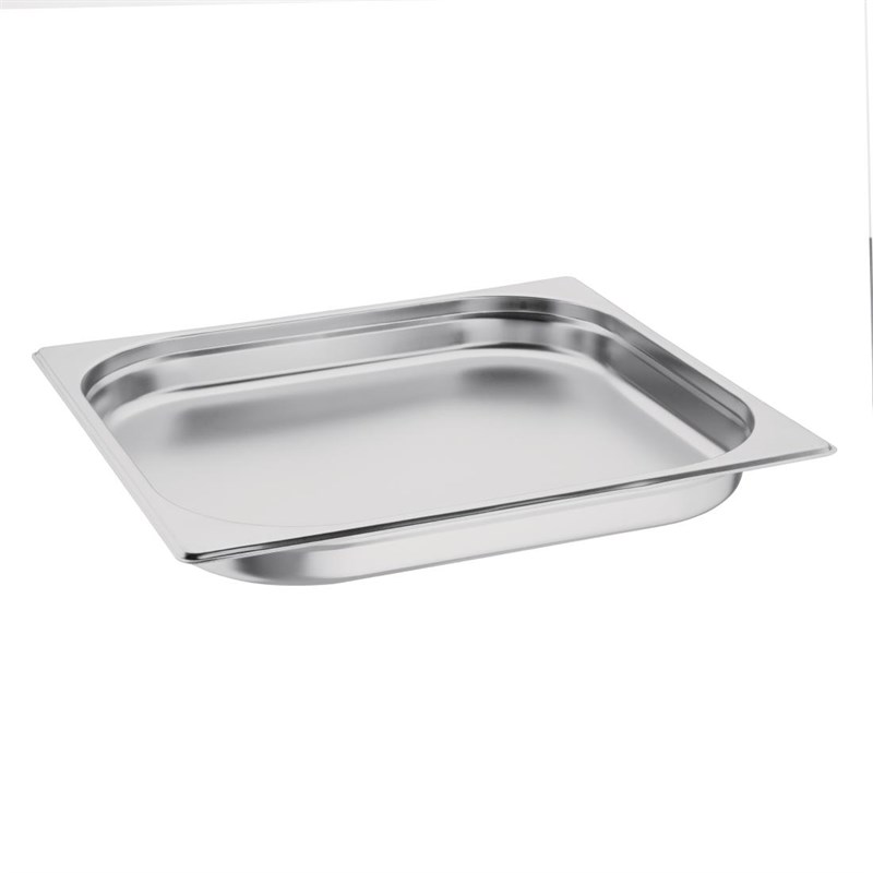 Deze GN 2/3 bak van Vogue is enorm veelzijdig en kan gebruikt worden voor verschillende toepassingen, zoals het koken, opslaan, opwarmen, vervoeren, koelen en presenteren van voedsel. GN bakken kunnen ook direct vanuit de oven in de vriezer en in de bain marie en dat scheelt u weer in de hoeveelheid afwas.