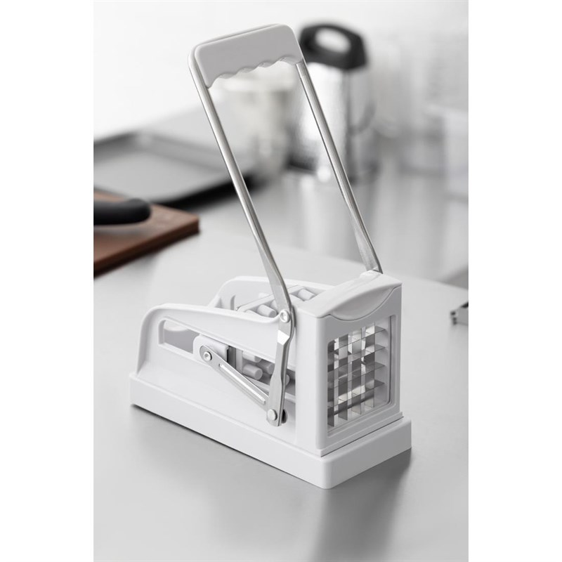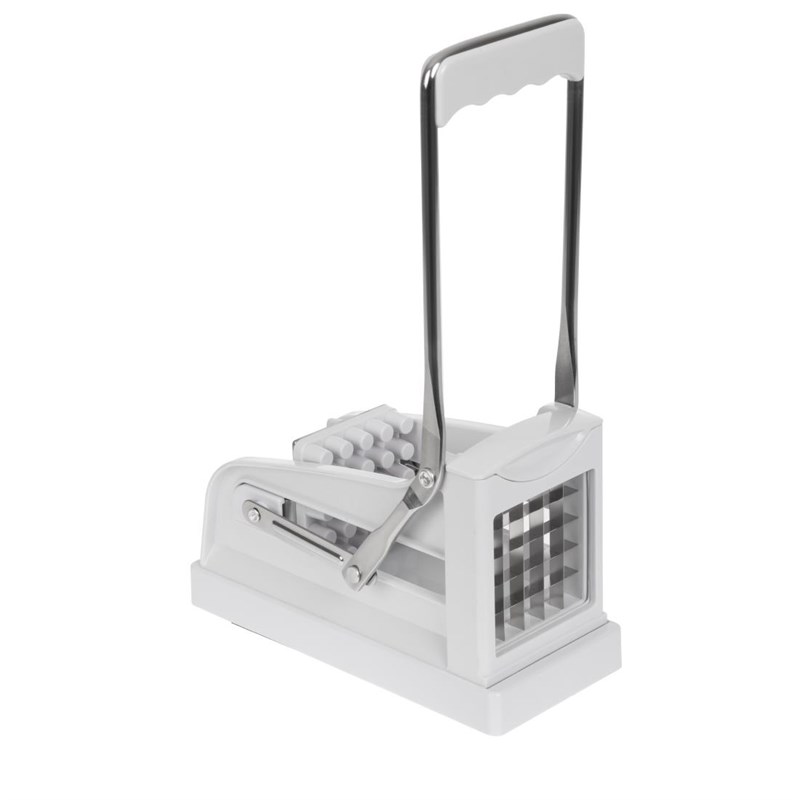 Met deze aardappel- en groentesnijder maakt u snel en eenvoudig frites van aardappel en andere groenten. Met lange hendel en stabiele behuizing voor eenvoudig gebruik. Inclusief een 10mm en 13mm mes waarmee u dunne of dikke frites kunt snijden van aardappel en andere groenten. Deze duurzame snijder is ook vaatwasserbestendig.