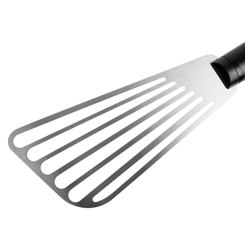 deze geperforeerde turner van Déglon is een musthave voor iedere professionele keuken en ideaal voor het keren van o.a. burgers en bacon, want vet kan goed weglopen. Het ergonomische, kunststof handvat ligt zeer comfortabel en stevig in de hand en is voorzien van een inkeping zodat hij tegen de rand van de pan gezet kan worden zonder weg te glijden. Ook is de turner vaatwasserbestendig.