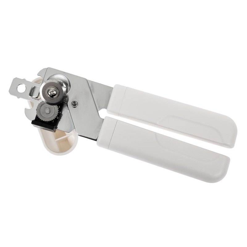 Makkelijk te gebruiken opener met RVS messen en wieltjes en grote draaiknop. Kan worden gebruikt voor ieder formaat blik. Met geïntegreerde flesopnener.