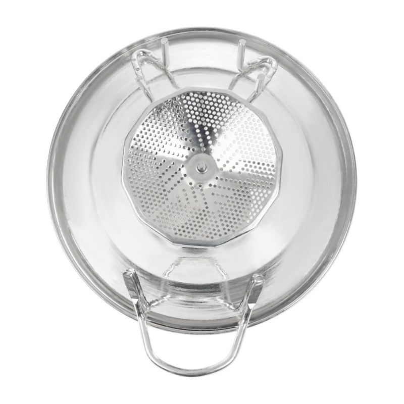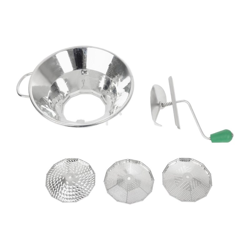 Deze professionele groentezeef Van Tellier is gemaakt van RVS en is ideaal voor het maken van o.a. soep, puree en moes. De groentezeef komt met 3 zeven, voor 3 verschillende diktes. De zeef wordt met de hand aangedreven door middel van een comfortabele, antislip hendel en produceert tot 1,5kg per minuut. De zeef is eenvoudig in gebruik en geschikt voor zowel professionele keukens als voor thuis.