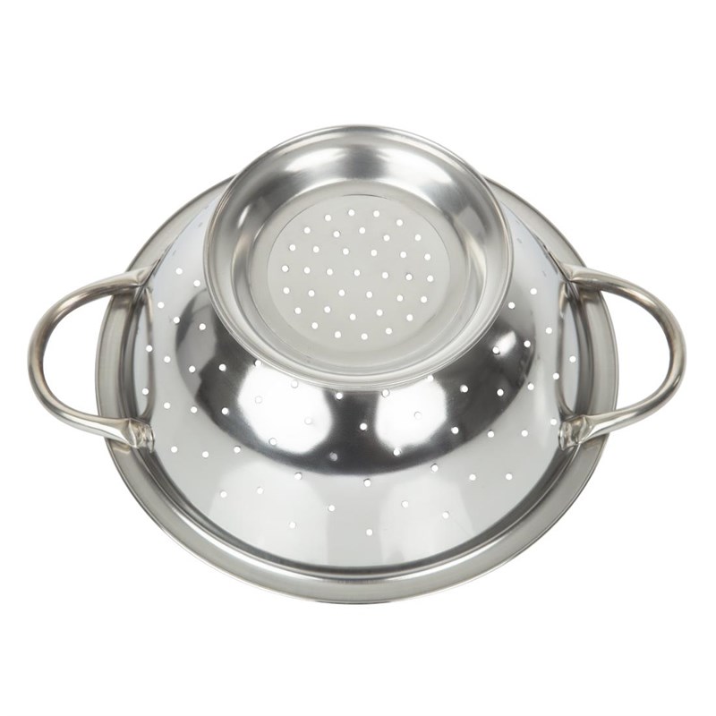 Dit vergiet van Vogue is voorzien van 2 robuuste handvatten en voldoende gaten om eenvoudig pasta, rijst en groenten af te gieten. Het is gemaakt van zeer sterk RVS en daardoor erg robuust, duurzaam en geschikt voor intensief gebruik in een drukke keuken. Dankzij de voet is hij ook eenvoudig in een pan te zetten.