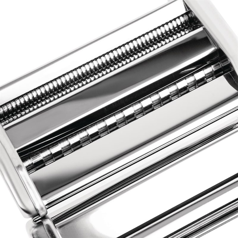 Maak eenvoudig verse pasta met deze 15cm pastamachine van Vogue. De machine maakt pasta in twee breedtes en verschillende diktes. Door de handmatige bediening kunt u zelf kiezen wat voor pasta u voor uw gasten op het menu wilt zetten.