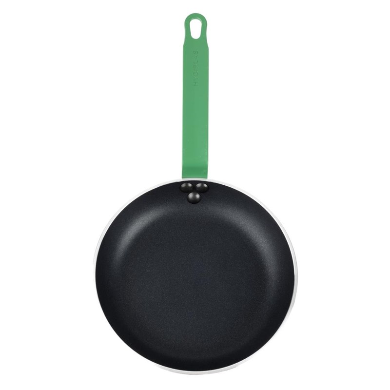 De anti-aanbakpannen van Hygiplas zijn voorzien van een speciale Teflon Platinum Plus coating die snelle en efficiënte resultaten garandeert. De aluminium pannen worden gelijkmatig warm, zijn makkelijk schoon te maken en hebben een lange levensduur. De pannen passen binnen een kleurcodesysteem om kruisbesmetting te voorkomen. Het groene handvat betekent dat ze geschikt zijn voor vegan en vega ingrediënten en gerechten.
