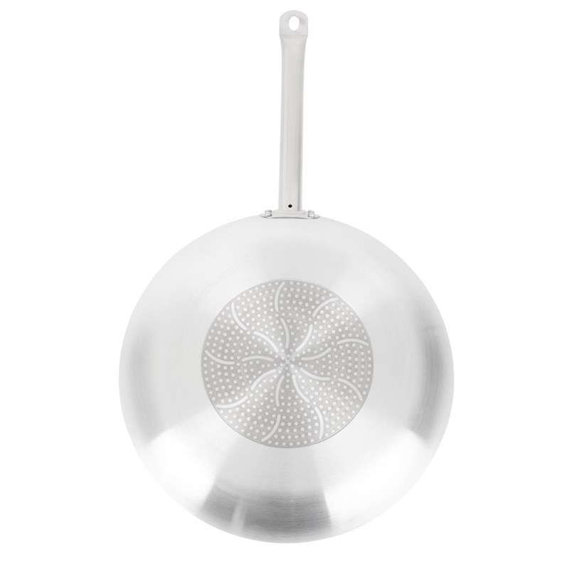De aluminium constructie van de pan is erg sterk, makkelijk schoon te maken en zorgt ervoor dat het oppervlak gelijkmatig warm wordt voor een perfect resultaat. Door het extra lange handvat kunt u de pan op ergonomische wijze vervoeren en er gerechten uit serveren.