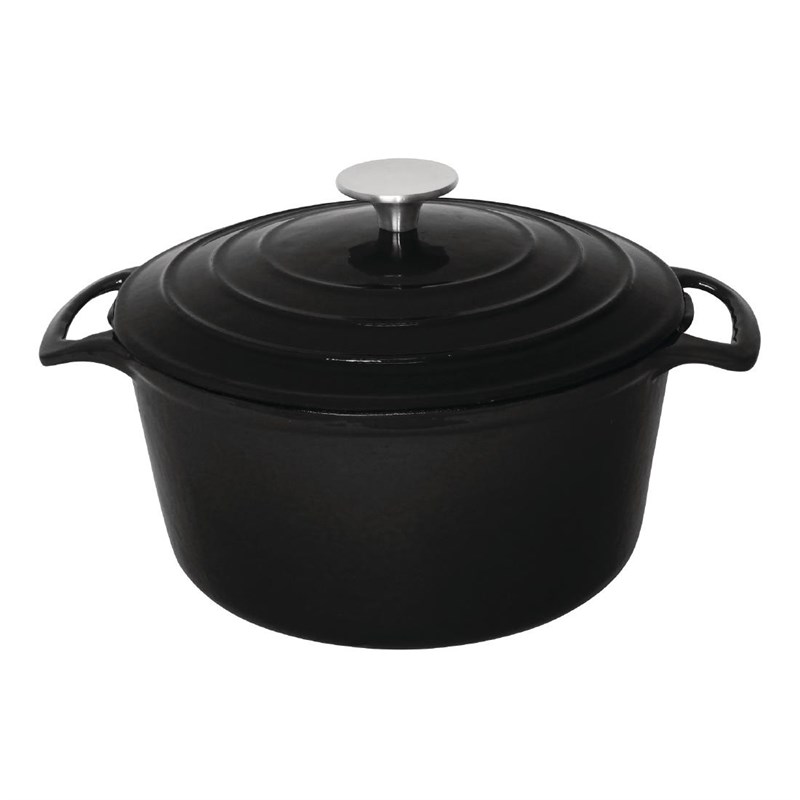 Traditionele, gietijzeren, ronde braadpan met handgrepen aan de zijkanten en een RVS knop op het deksel. Deze pan heeft zeer goede warmhoudeigenschappen en zorgt voor een gelijkmatige warmteverdeling. Deze mooie, zwarte pan is ideaal om vanuit de oven rechtstreeks te serveren aan tafel, voor een mooie presentatie van het gerecht. De deksel heeft een innovatieve vorm waardoor vocht terug in de pan druipt.