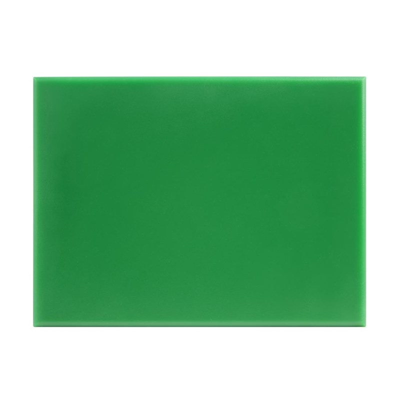 Deze snijplank van hogedichtheidpolyethyleen is bestand tegen de druk van een drukke horeca-omgeving. Dankzij de groene kleur, voor groente en fruit, is de snijplank eenvoudig te herkennen en het gebruik van aparte snijplanken voor iedere voedselgroep is de beste manier om het risico op voedselcontaminatie te verkleinen. De snijplank is niet absorberend en dus grondig hygiënisch en eenvoudig te reinigen.