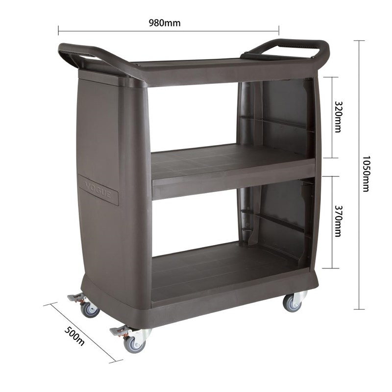 Of u nu borden, afval, kleine apparaten of wasgoed vervoert, de Vogue polypropyleen mobiele trolley is een betrouwbare oplossing om de last te verlichten. Ontworpen voor indrukwekkende stabiliteit en duurzaamheid, kan de mobiele trolley uitblinken in vrijwel elke omgeving, zoals hotels, cafés, restaurants of verzorgingshuizen. De trolley is eenvoudig in elkaar te zetten en heeft een royaal draagvermogen van maar liefst 90 kg. Hierdoor heb je genoeg kracht om zwaardere spullen zoals theepotten of serviesgoed te vervoeren. Het is ook gemakkelijk schoon te maken en dankzij de kleine lipjes op elke plank blijven de spullen die worden vervoerd op hun plaats.