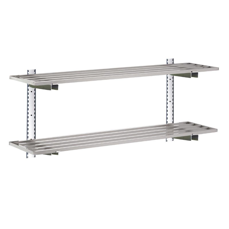 Gebruik deze open wandplank van Gastro M om kook- en keukengerei op te bergen. Ideaal voor in een drukke, professionele keuken. De plank is gemaakt van RVS en daarom zeer stevig, duurzaam en geschikt voor intensief gebruik. Hij heeft een maximum draagvermogen van 50kg. Dankzij het innovatieve design kan er ook keukengerei aan de plank gehangen worden. In combinatie met de plankdragers en dragerhouders kan de plank eenvoudig aan de muur bevestigd worden.