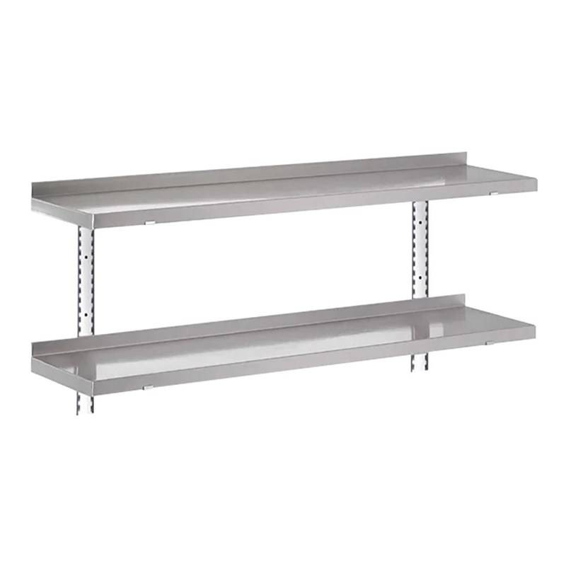 Gastro M complete wandplankenset 2 niveaus 100x40cm is ideaal voor het opbergen van kookgerei in een drukke, professionele keuken. De complete set bevat de legborden, de dragers en een volledige montageset. Bovendien is de complete set vervaardigd van hoogwaardig roestvrij staal, wat langdurige duurzaamheid, robuuste sterkte en uitstekende bestendigheid tegen slijtage en corrosie garandeert, perfect voor intensief dagelijks gebruik. De robuuste constructie maakt het een betrouwbare en hygiënische opslagoplossing voor elke keukenomgeving met hoge eisen.