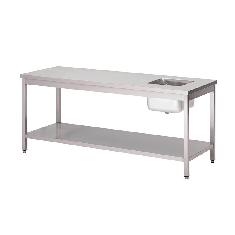 Gastro M RVS werktafel met spoelbak rechts en onderblad 85x180x70cm