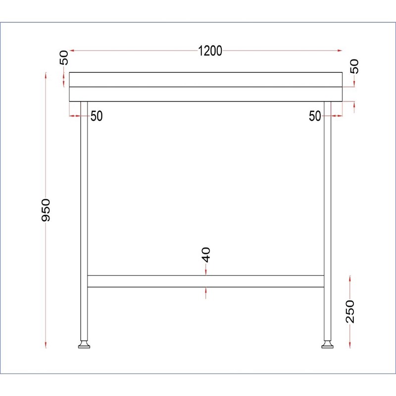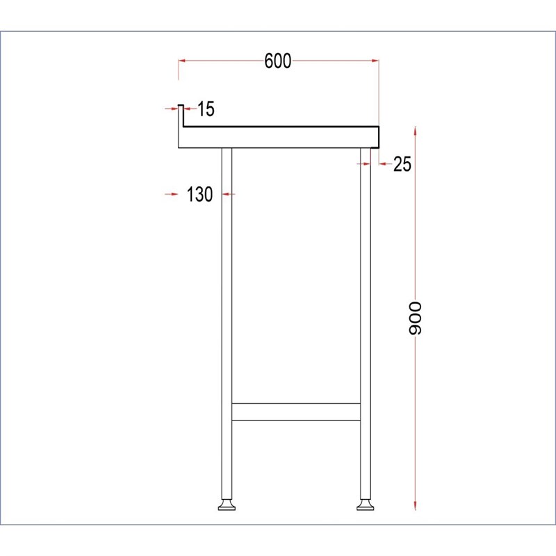 Holmes RVS wandtafel met opstaande rand 600(D)mm