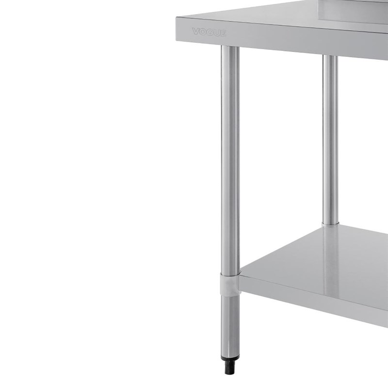 Creëer een praktische en duurzame plek om voedsel te bereiden met deze RVS werktafel van Vogue. Zo heeft u een efficiënte keuken om in te werken, ook op drukkere momenten. Het 90cm lange blad is gemaakt van sterk RVS en bestand tegen dagelijks gebruik in veeleisende keukens, maar ook eenvoudig te reinigen, voor een optimale hygiëne. Het onderblad biedt praktische opbergruimte en de achteropstand voorkomt dat water, voedsel, keukengerei en pannen achter de werktafel terechtkomen.