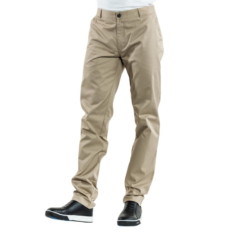 De Regular-koksbroek is een model met rechte pijpen die comfortabel op de heup rusten. Een slim en trendy ontwerp. De koksbroek is afgewerkt met elastiek aan de achterkant voor extra comfort, riemlussen en een metalen opnaaiknoop. De Sabbia biedt een perfecte, neutrale basis.