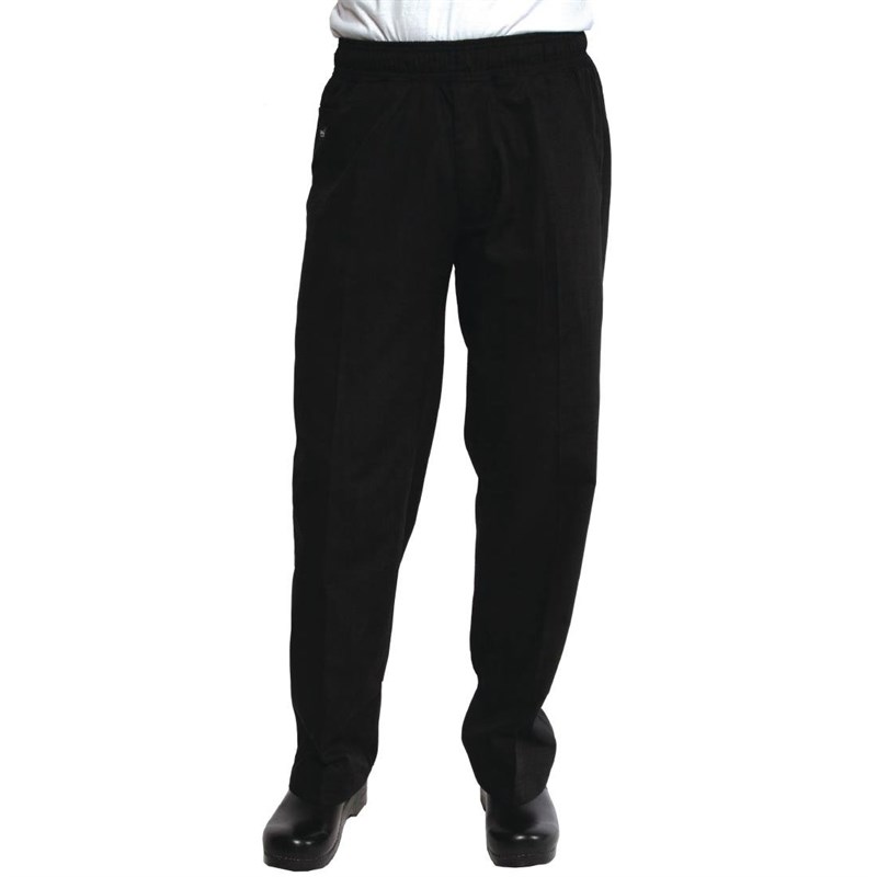 Zeer nette, praktische en comfortabele unisex koksbroek van Chef Works met 2 ruime steekzakken voor en 2 handige, grote zakken achter. Deze broek biedt veel draagcomfort dankzij de elastische tailleband en het polyester/katoenen materiaal. Hierdoor is de duurzame broek geschikt voor chemische reiniging en blijft deze er als nieuw uitzien.