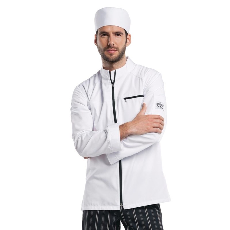 De Modena is een strakke, stoere koksbuis, afgewerkt met contrasterende zwarte ritsen. De buis heeft een borstzakje met rits en valt op door zijn elegante eenvoud. Een perfecte combinatie van functionaliteit en uitstraling. Verkrijgbaar in de maten S, M, L, XL, XXL en XXXL.
