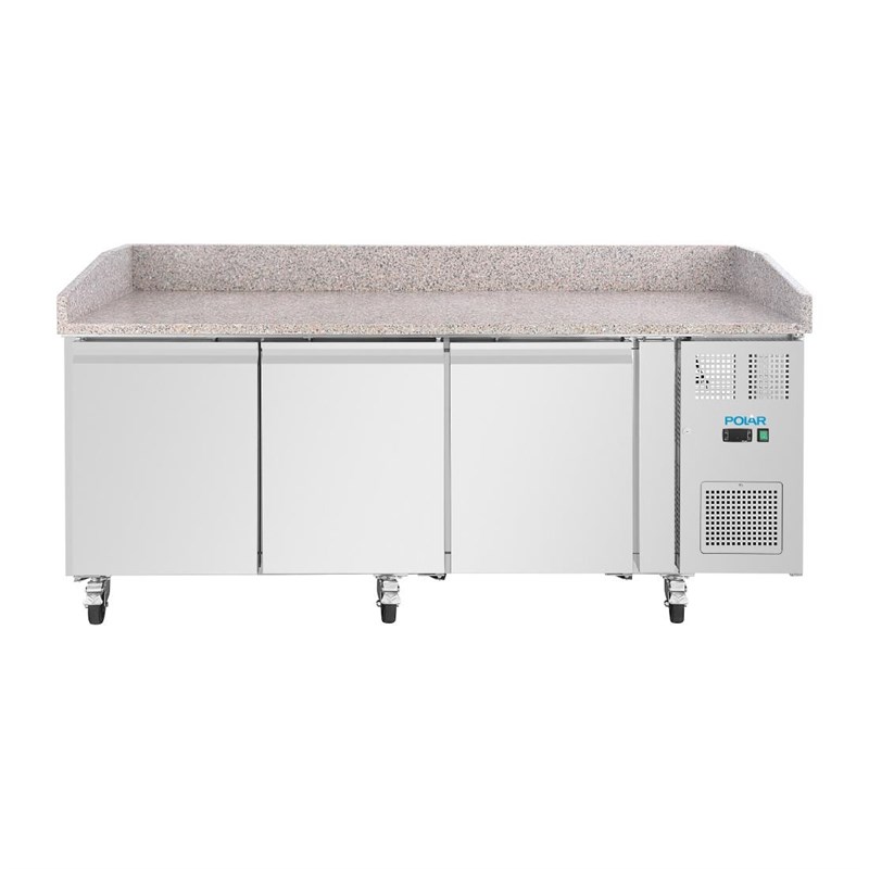 Een zeer betrouwbaar station voor het voorbereiden van pizza's, wraps, salades of sandwiches, de Polar U-Series driedoor voorbereidende koelkast combineert betrouwbare, makkelijk toegankelijke koeling met een stevige voedselbereidingsoppervlakte, zodat je altijd je meest gebruikte ingrediënten binnen handbereik hebt.