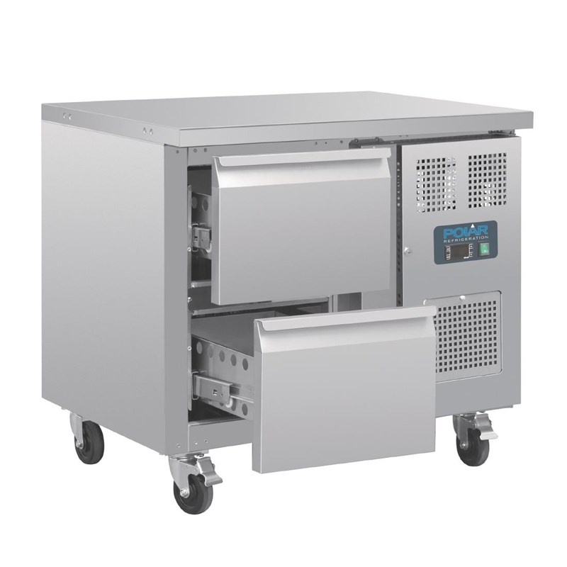 • Polar U-serie geventileerde gekoelde GN werkbank met 2 laden