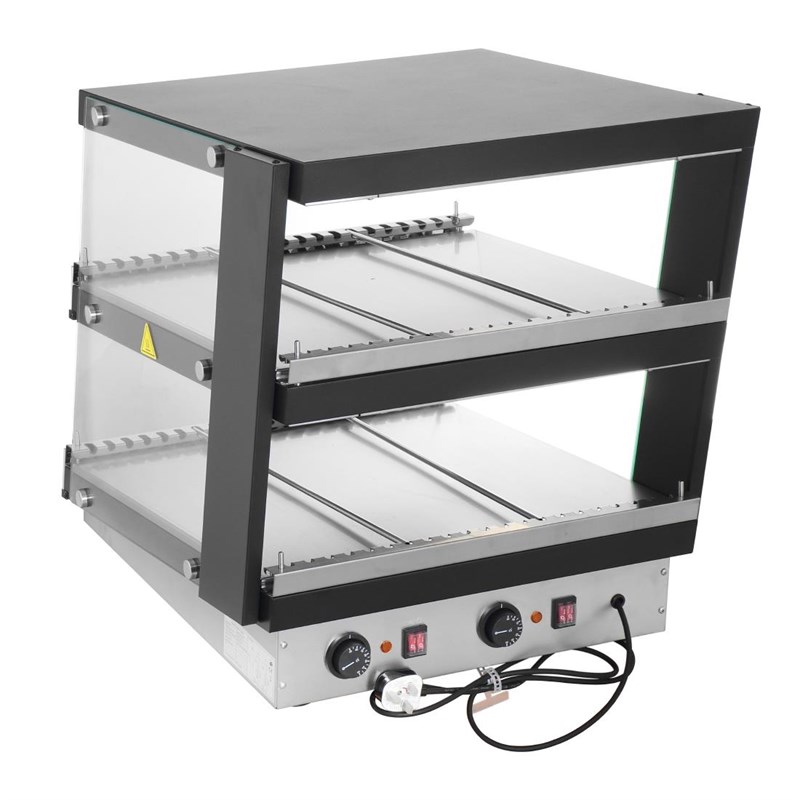Met drie verwarmde planken, elk met verstelbare scheidingsstangen, is er voldoende ruimte voor uw verpakte etenswaren in alle vormen - hamburgers, kip wraps, burrito's en meer worden gemakkelijk opgeslagen en warm gehouden tot ze worden besteld. En aangezien elke plank onafhankelijke bedieningselementen heeft, kunt u het voedsel op elke plank op verschillende temperaturen houden, of zelfs één plank uitschakelen tijdens rustigere uren om energiekosten te besparen.