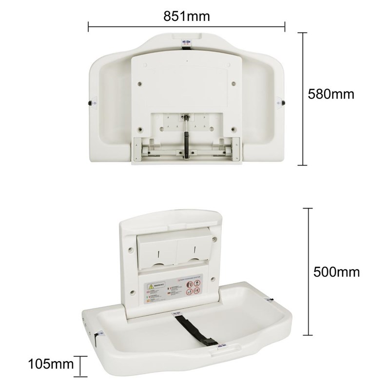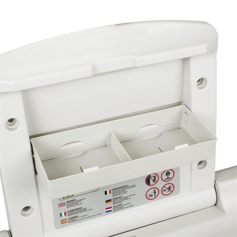 De robuuste, praktische en gebruiksvriendelijke horizontale baby verschoontafel van Bolero is een slimme keuze voor elke oudervriendelijke ruimte. Dankzij het ruimtebesparende ontwerp met scharnieren kan het verschoonstation plat tegen de muur worden geklapt om je wasruimtes netjes en toegankelijk te houden.
