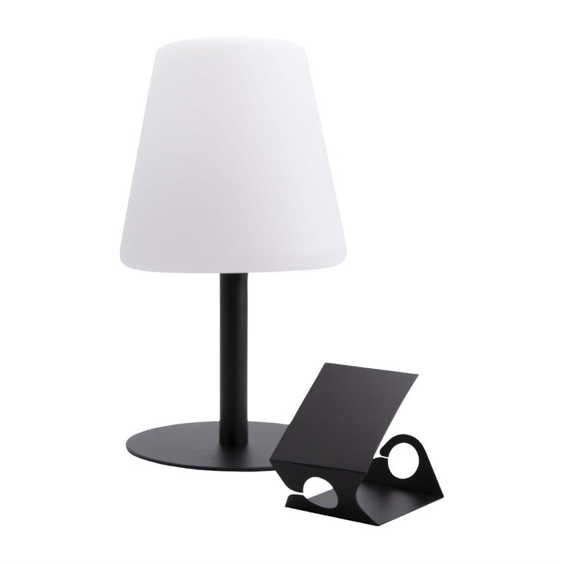 • De tafellamp met zwarte voet heeft een geïntegreerde led en batterij met een levensduur tot 20 uur.
