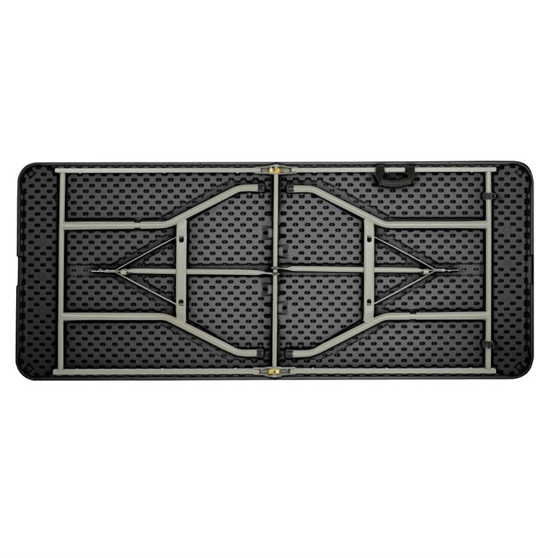 Het zwarte tafelblad is gemaakt van hogedichtheidspolyethyleen voor uitstekende krasbestendigheid en duurzaamheid in alle weersomstandigheden, terwijl het afneembare oppervlak minimaal onderhoud vergt. Aan het einde van de dienst maakt het centrale vouwontwerp van de tafel opbergen snel en eenvoudig - ingeklapt is hij minder dan één meter lang.