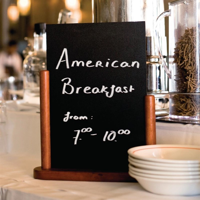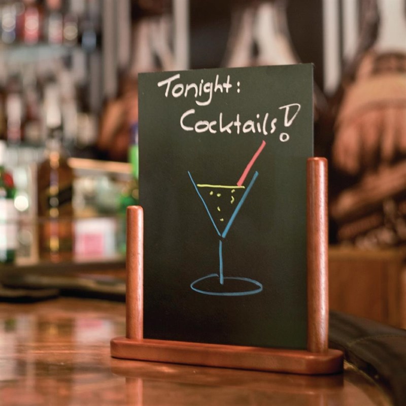 Ideaal voor op tafel en de bar om specialiteiten aan te prijzen. Securit krijtbordjes in mahonieoptiek met half omsluitende houder voor stabiliteit en bescherming. Gemakkeljk uit de houder te halen om te beschrijven. Tweezijdig te beschrijven voor maximale zichtbaarheid of voor 2 mededelingen. Deze kleine bordjes zijn een stevige en toch elegante manier om tafelnummers, reserveringen, dranken of specialiteiten te tonen.
