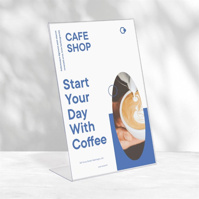 Budget bordhouder gemaakt van hoogwaardige polystyreen, om uw marketingadvertenties, promoties, restaurantmenu's, folders en andere belangrijke berichten te tonen. Deze veelzijdige houders kunnen worden gebruikt in kantoren, restaurants, scholen en andere commerciële omgevingen. De bordhouder heeft insteeksleuven aan de onderkant en zijkanten voor snel laden en lossen van de advertenties. Het snel-ladende ontwerp maakt het bord geschikt voor plaatsen waar de grafieken vaak worden veranderd, zoals restaurants. De bordhouder staat rechtop op zichzelf zonder extra steun dankzij de L-vorm. De brede platte basis houdt de bordhouder stabiel op toonbanken, bureaus, desktops en elke andere vlakke ondergrond. Het innovatieve schuine ontwerp maakt de grafiek gemakkelijk zichtbaar vanaf een hoogte, zodat klanten die voorbij lopen de grafieken ook gemakkelijk zullen opmerken. De heldere polystyreen constructie geeft uw grafieken een perfecte zichtbaarheid.