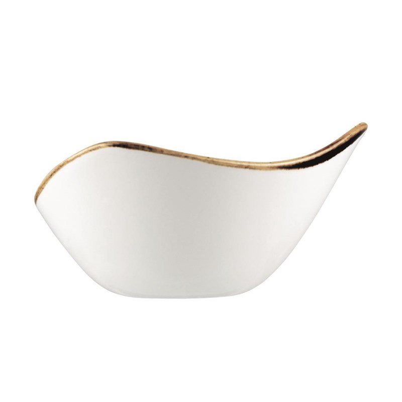 De kleine omvang van dit bord is perfect voor het serveren van kleine bijgerechten zoals een verse zomersalade of aspergepunten gewikkeld in Parmaham. De driehoekige vorm heeft het uiterlijk van handwerk.