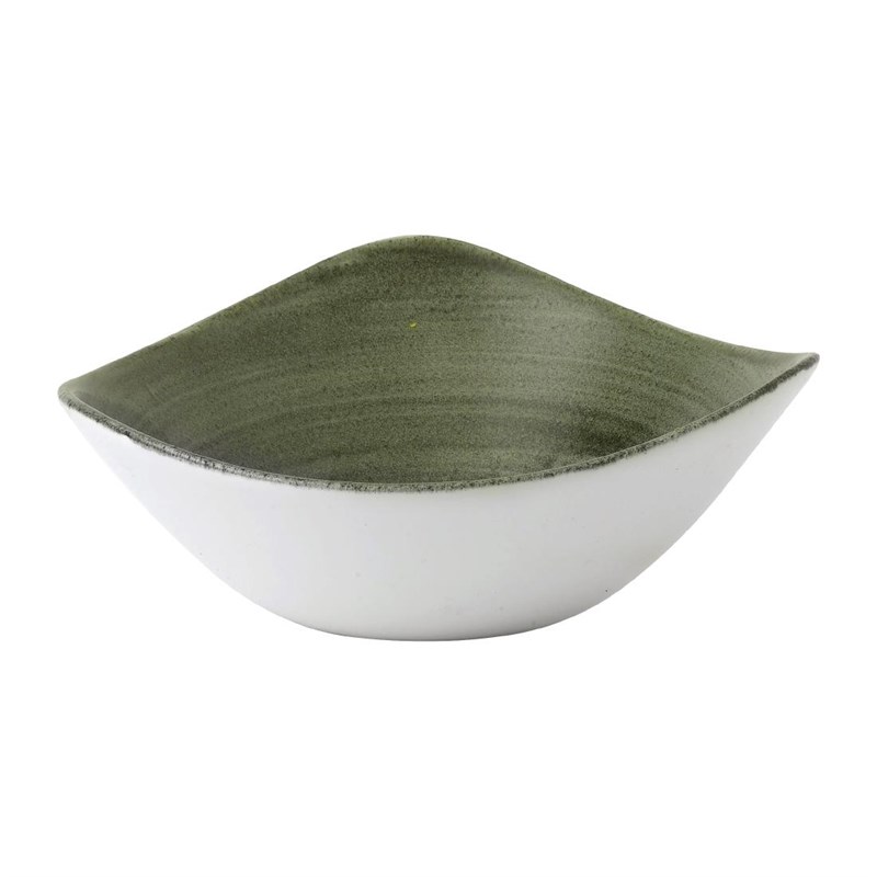 Doorbreek de traditie van klassiek wit servies met de kleine Patina Lotus schalen van Churchill. De schalen zijn ontworpen om het uiterlijk van elk gerecht te benadrukken, met eigentijdse vormen en een Gebronsd Groene kleur
