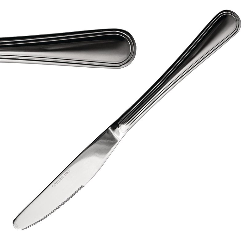 Deze Comas Bilbao dessertmessen garanderen een klassiek ontwerp met ongelooflijke praktischheid en duurzaamheid, en zijn ideaal voor elk café, bistro of pub. Met een ingetogen maar tijdloos ontwerp en hoogglansafwerking, zijn deze dessertmessen eenvoudig en uiterst stijlvol, en passen moeiteloos bij elk decor en servies, waardoor uw gerechten centraal staan en uw gasten verrassen. Gemaakt met een stevig, innovatief handvat, zijn de messen ergonomisch en stabiel in de hand, wat zorgt voor maximaal comfort en controle bij het eten van heerlijke desserts. Een premium roestvrijstalen constructie maakt deze bestekdelen ook enorm sterk en slijtvast, waardoor de hoge kwaliteit langer behouden blijft en u geld bespaart op vervangingen.