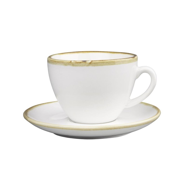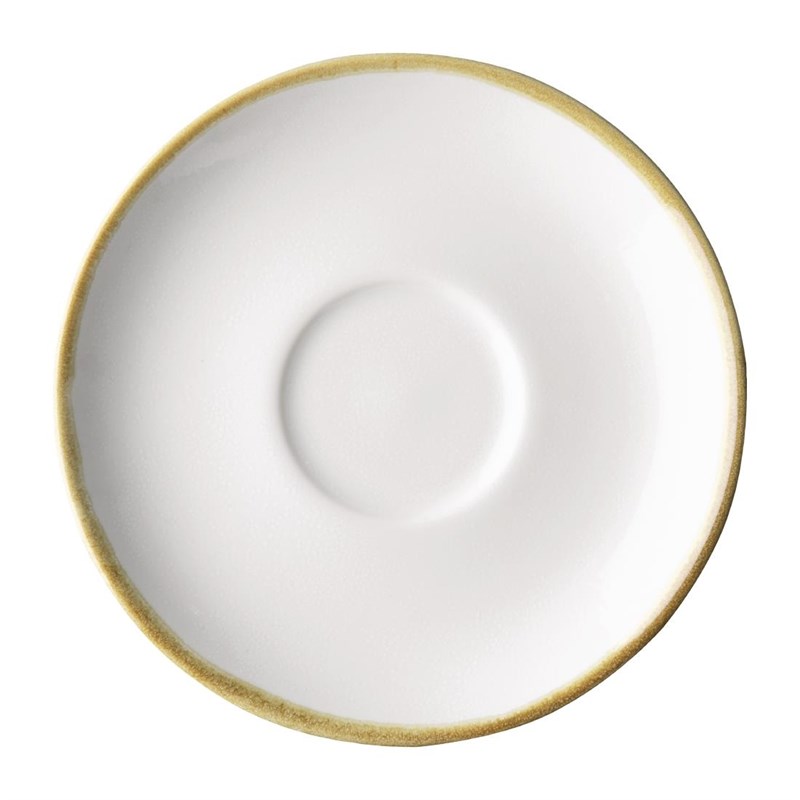 Deze schotels passen perfect bij de 230ml kopjes van Olympia Kiln. Ze zijn in dezelfde stijl uitgevoerd, met een handgeschilderde rand die zorgt voor een unieke, ambachtelijke uitstraling. De licht glooiende vorm vangt geknoeide koffie op en biedt een stevige basis voor het kopje. Koffieservies boordevol karakter.