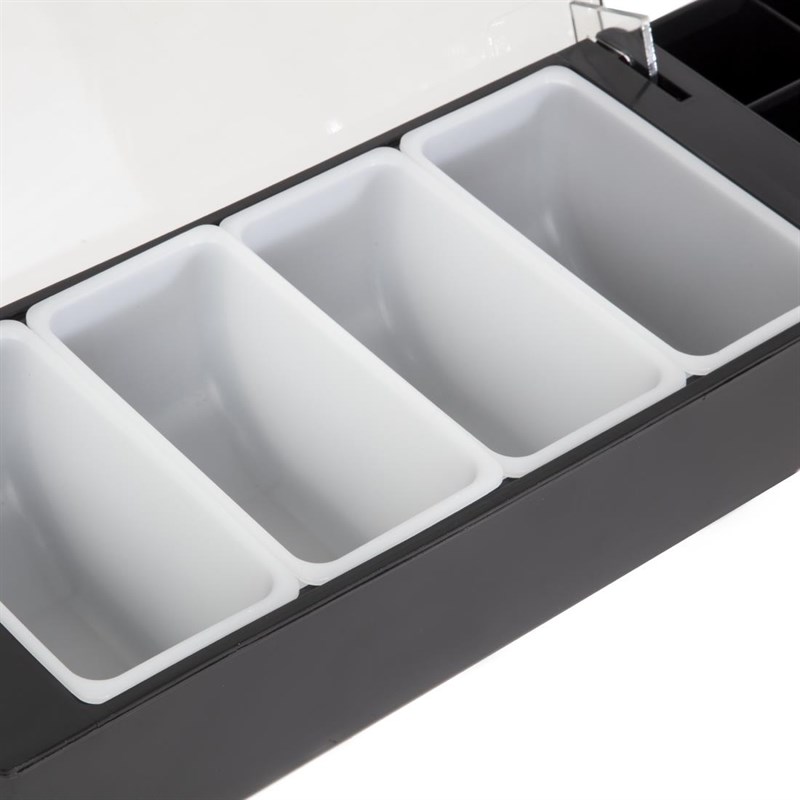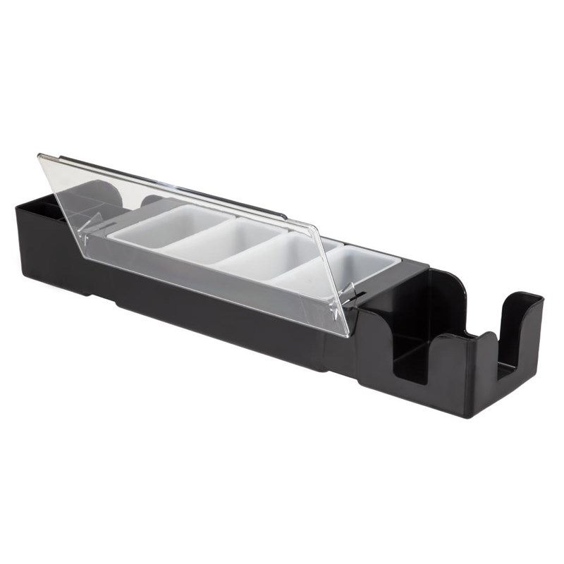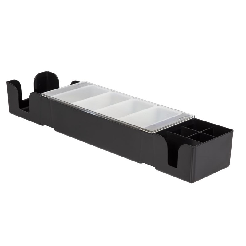 Eigentijds en praktisch barcenter. Een handige organiser voor servetten, rietjes en schijfjes citroen en limoen.