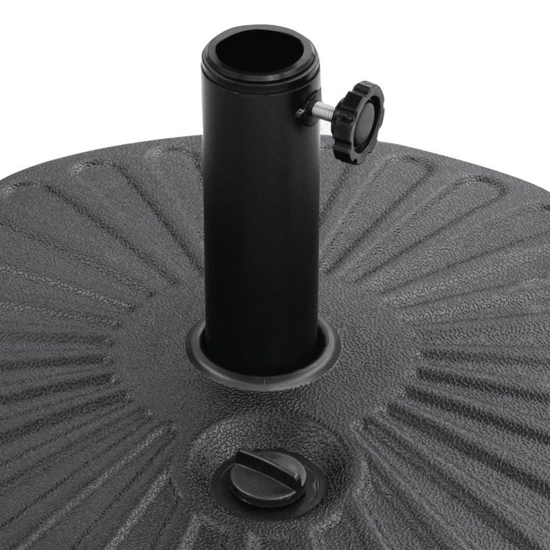 Wilt u uw parasols en parasols het hele jaar door veilig opbergen? Zoek niet verder dan deze zwarte parasolvoet van Bolero. Ontworpen om te worden gevuld met water, zorgt het gewicht van 21 kg ervoor dat uw parasols zelfs in de meest barre weersomstandigheden stil blijven staan - waardoor het risico op schade aan uw bedrijf wordt verminderd en gasten en personeel veilig worden gehouden. En omdat de basis snel en gemakkelijk te vullen of te legen is, kunnen uw medewerkers uw buitenruimtes in een mum van tijd opzetten en inpakken! Deze parasolvoet is compact genoeg om de ruimte onder de tafel niet te beperken, maar toch zwaar genoeg om uw parasols stevig op hun plaats te houden. Deze parasolvoet biedt u een veilige en praktische oplossing voor het vasthouden van uw selectie Bolero-parasols.