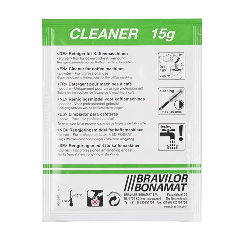 De Bravilor Cleaner is een reinigingsmiddel dat koffie- en theeresten effectief verwijdert uit uw koffiemachine of accessoires zoals airpots. Het schoonhouden van koffieapparatuur is van cruciaal belang voor het behoud van de smaak. Volg vóór gebruik de instructies op de verpakking en de handleiding van uw koffiezetapparaat.