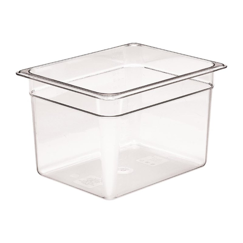 Dankzij het hoogwaardige polycarbonaat is de bak zeer stevig en gaat hij lang mee en omdat hij transparant is, kunt u de inhoud snel en gemakkelijk controleren. Met een deksel van Cambro (apart verkrijgbaar) kunt u de bak luchtdicht afsluiten en zorgt u ervoor dat de inhoud vers blijft en beschermd is tegen kruisbesmetting door andere producten. De bak is rondom voorzien van een uitstekende rand zodat u deze in een rek kunt schuiven en daar kunt opslaan. Het kunststof materiaal blijft koel aanvoelen, zelfs wanneer de bak tot 99°C wordt verwarmd, waardoor u zich niet kunt branden. De bak is vaatwasserbestendig.