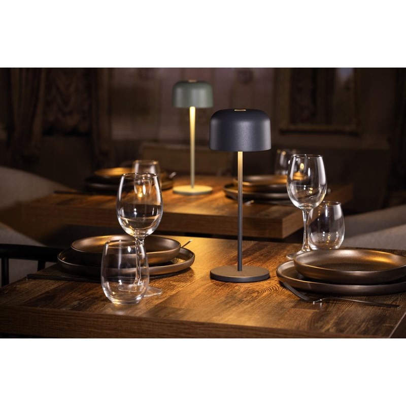 Creëer de perfecte sfeerbelichting met de grijze tafel lamp van Olympia. Het draadloze ontwerp geeft je de vrijheid om het overal te plaatsen, binnen of buiten. Met energie-efficiënte lampen biedt het langdurige verlichting en creëert het een uitnodigende sfeer, waardoor het ideaal is voor terrastafels, hotelkamers, bars en receptiegebieden.