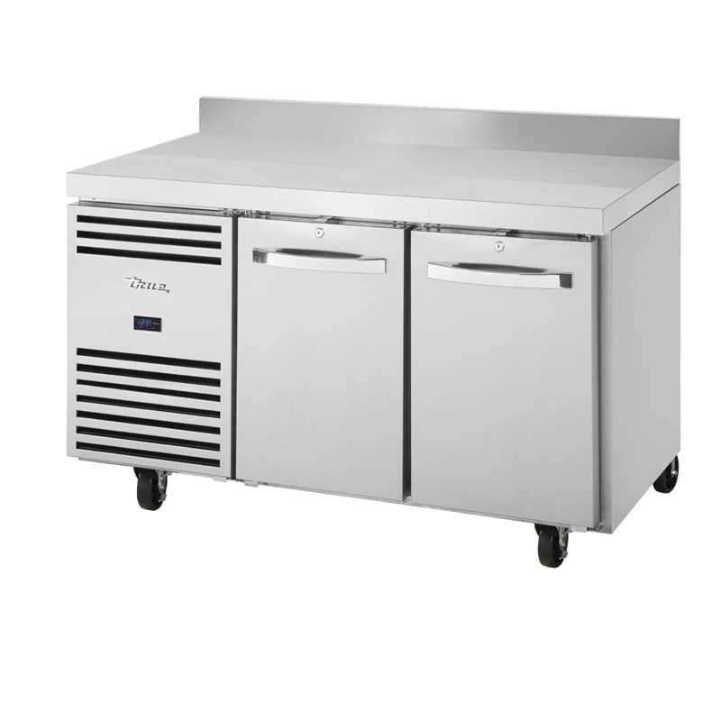 De True dubbeldeurs werkbankvriezer is een zeer efficiënte oplossing voor cateraars die bevroren ingrediënten binnen handbereik moeten houden. Door het gebruik van milieuvriendelijk koelmiddel en indrukwekkende groene isolatie helpt de vriezer uw energiekosten en milieu-impact te verminderen. Met een royaal intern volume achter twee afsluitbare massieve deuren biedt de vriezer alles wat nodig is om voedsel veilig op te slaan en gemakkelijk toegankelijk te maken. Schoonmaken en onderhoud zijn ook eenvoudig, dankzij de ingebouwde spatwand, gemonteerde zwenkwielen en de sterke roestvrijstalen constructie. Inclusief een toonaangevende garantie van vijf jaar als standaard.