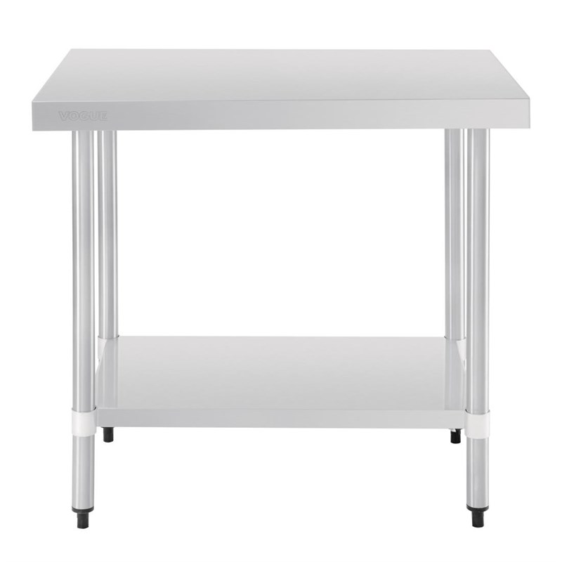 Creëer een praktische en eenvoudig te gebruiken plek om voedsel te bereiden in uw drukke, professionele keuken met onze RVS werktafels van Vogue. Deze 90cm lange tafel heeft een sterk en hygiënisch RVS werkblad dat bestand is tegen dagelijks gebruik in de meest drukke en veeleisende keukens en voedselbereidingsruimtes. Omdat deze tafel geen achteropstand heeft kan hij midden in ruimtes geplaatst worden of van de muur af zodat hij van meerdere kanten gebruikt kan worden, voor optimale efficiëntie.