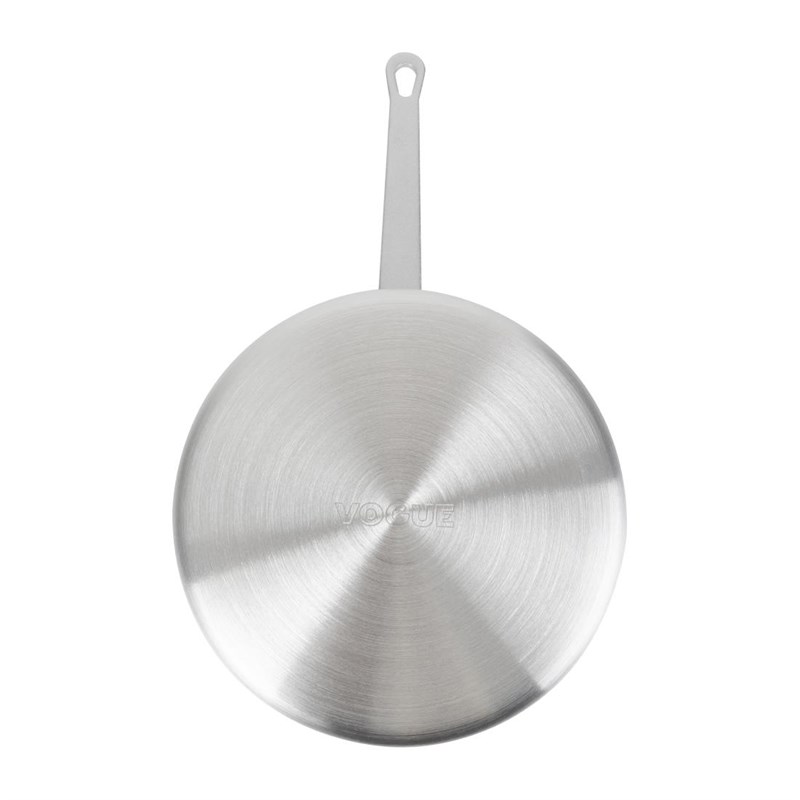 Deze sterke en robuuste steelpan van Vogue, met een capaciteit van 2,4L, is onmisbaar in elke professionele keuken. Het aluminium geleidt warmte uitstekend en zorgt zo voor een snelle en gelijkmatige warmteverdeling en perfecte resultaten. De pan is voorzien van versterkte, dubbeldikke randen en een stevig geklonken handvat. Hittebestendig handvat en deksel worden apart verkocht.