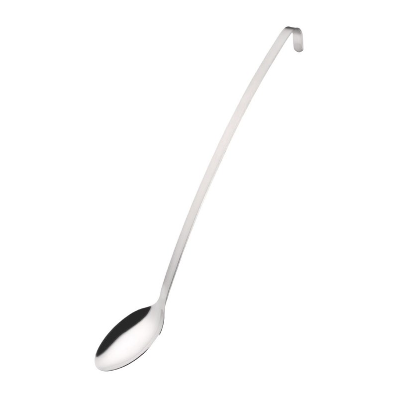 Deze topkwaliteit serveerlepel van Vogue heeft een lang handvat zodat u goed in diepe pannen kunt reiken om te roeren of op te scheppen zonder daarbij u handen te branden. Ook is de lepel ideaal voor het opscheppen en serveren van gelijke porties. De lepel is gemaakt van RVS, daardoor onzettend robuust, eenvoudig te reinigen en ideaal voor gebruik in o.a. cafés, restaurants, bistro's en kantines. Voorzien van een handige haak om de lepel op te kunnen hangen.